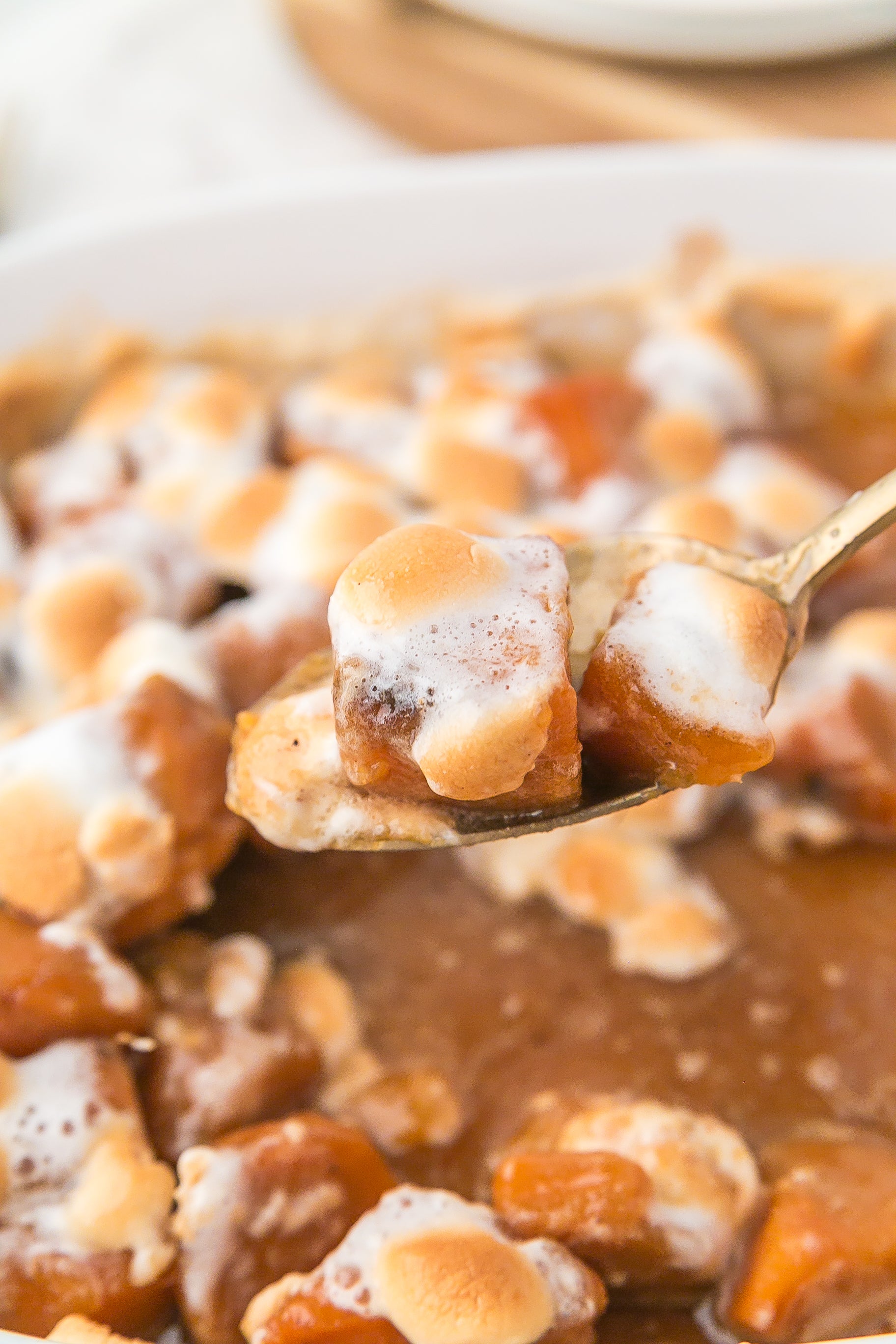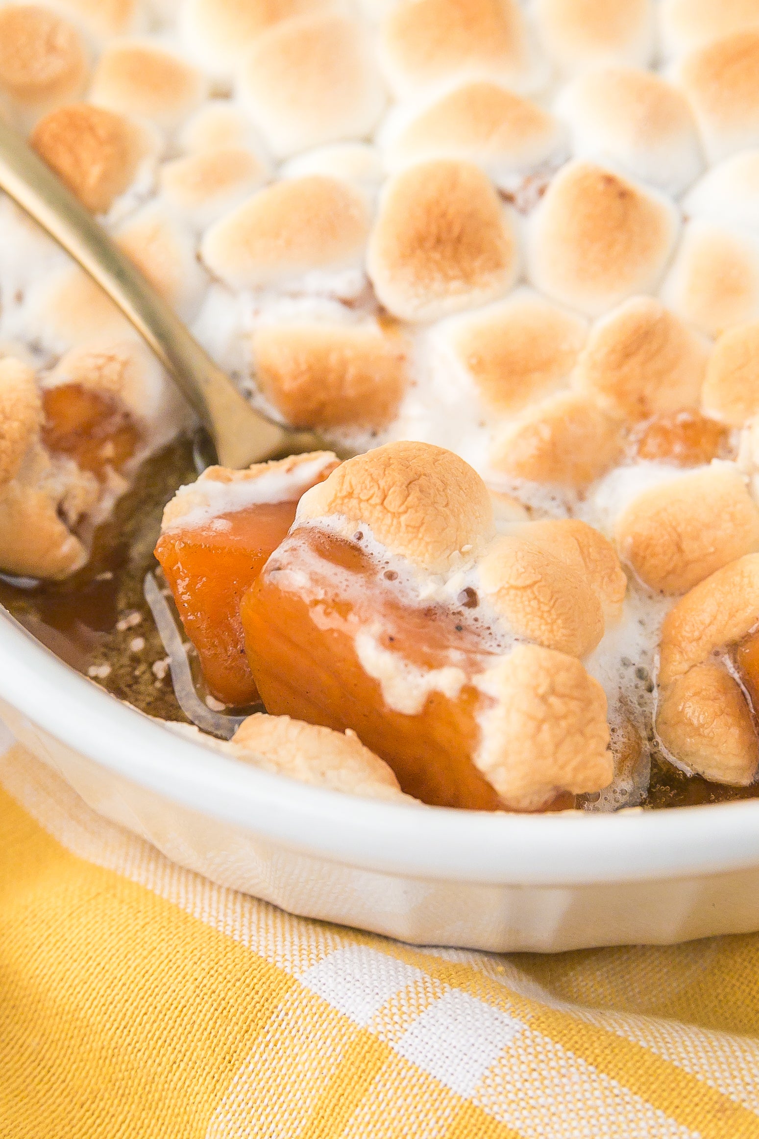 Made with yams, butter, brown sugar, cinnamon, nutmeg, sea salt and mini marshmallows.